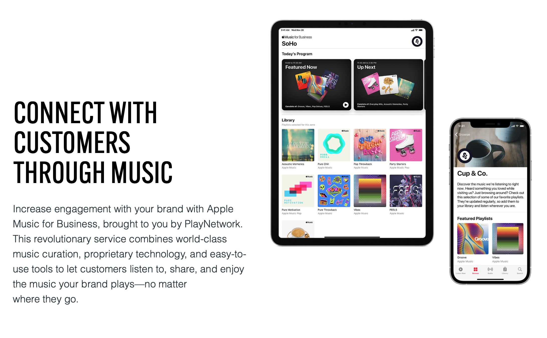The world's leading B2B music service featuring best-in class music curation, technology, and engagement - considered one of Apple's 5 most important business services of the decade by TechRepublic.