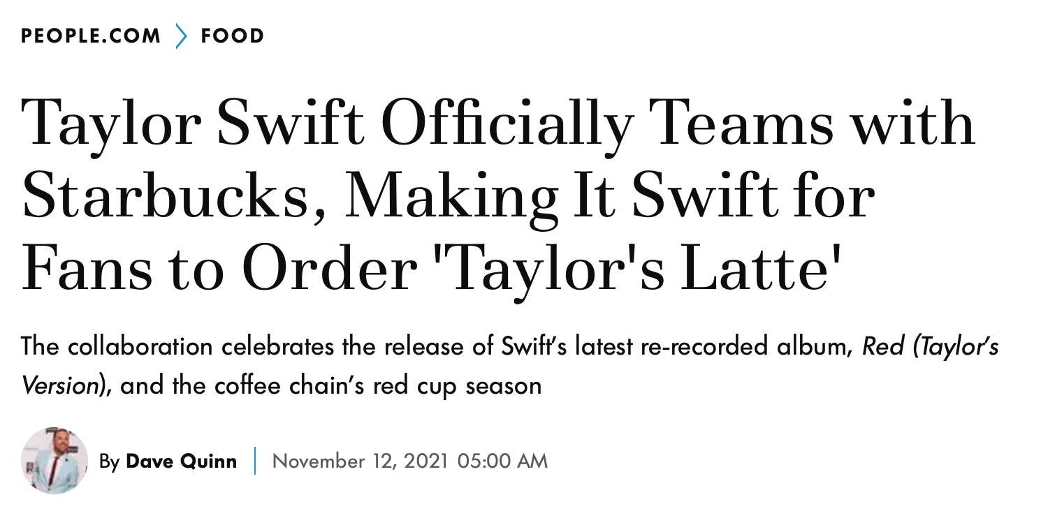We partnered with Starbucks & Taylor Swift to execute the world's largest simultaneous listening party, celebrating the release of "Red (Taylor's Version". This effort combined securing exclusive overhead licensing rights to feature a uniquely curated playlist featuring selections from Taylor's catalog, paired with validated proof of play data from around the world, showcased through an interactive dashboard. Featured in People and Food & Wine, the end result was the largest listening party ever hosted - producing over 24mm plays across 51 countries and 20,000+ endpoints.